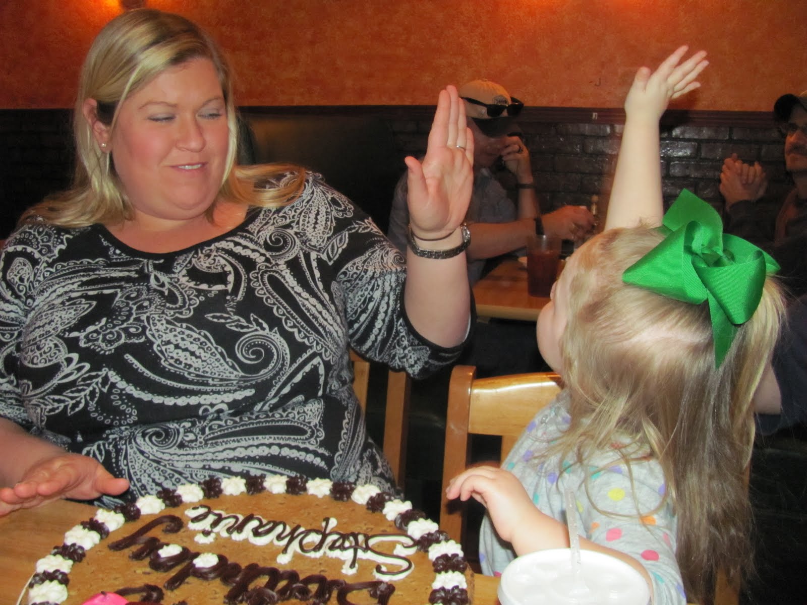 Sunday night I went to another Mexican restaurant in Mobile....there is a theme to this, I LOVE Mexican food!! This was my family birthday dinner (Mom, Stephen, Andrea, Lonnie, Me, JC, and Savanna)....And I got a cookie cake...my most favorite! Savanna thought the singing was just great!